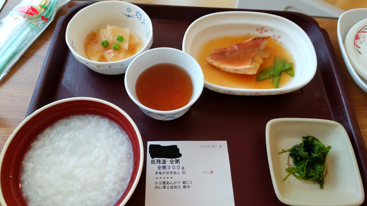 ベッドに移り、痛みと薬で朦朧としながらいろんな同意書を書き、連絡先を書き、その後は再び眠らされて夕食の時間。