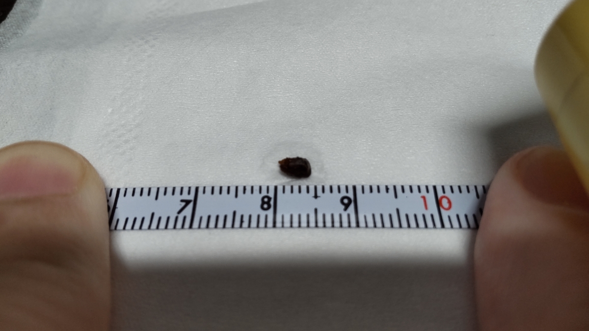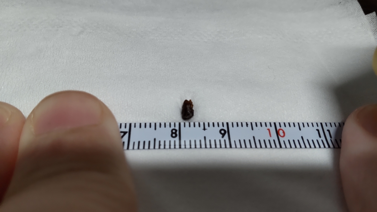 ずいぶんと大きな……。これは落ちてきそうだと言われた方かな。自然に排泄されるのを待つ大きさがだいたい5mmぐらいまでだそうなので、そりゃあ痛いはずだよ。と、この石を見ながらボンヤリと考えてました。